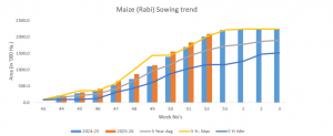 India’s rabi maize cultivation has picked up pace this season, indicating positive momentum in winter crop planting. As of 26 December 2025, data from the Ministry of Agriculture & Farmers Welfare shows that maize sowing has reached 2,092 thousand hectares, up from 2,012 thousand hectares during the same period last year. The rise in acreage points to improved field conditions and steady farmer interest in maize during the rabi season, which could help strengthen domestic maize supply for food, feed, and industrial uses in the months ahead, assuming normal weather continues through the growing period.
